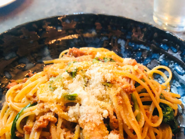 タイスタイルのトムヤム味のリングイネ。海老が贅沢にのっています。