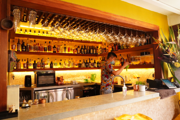 またバーカウンターがあり、奥にテラス席もあります。夜にお酒を飲む場合、とてもいい雰囲気です。